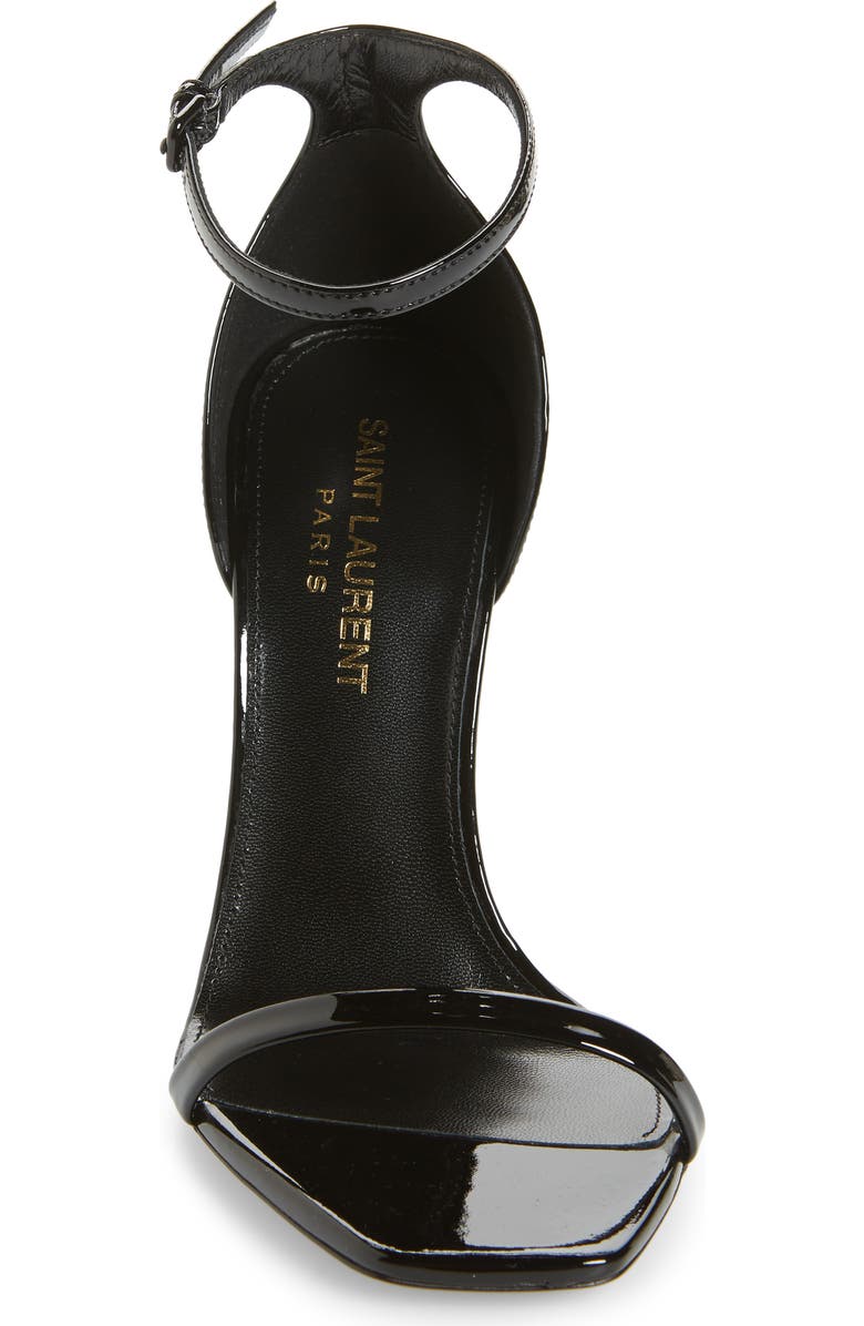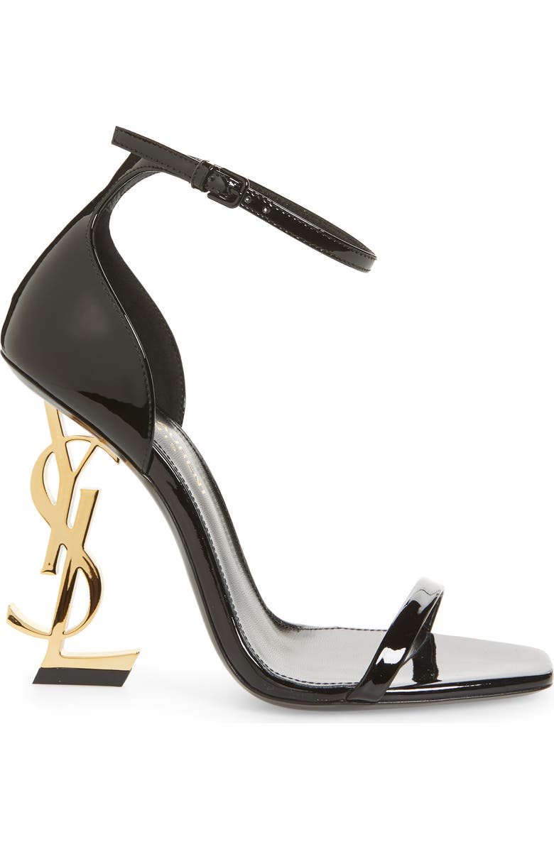 Balanced on an interlocking YSL logo heel, this striking ankle-strap pump makes a signature statement with every step.